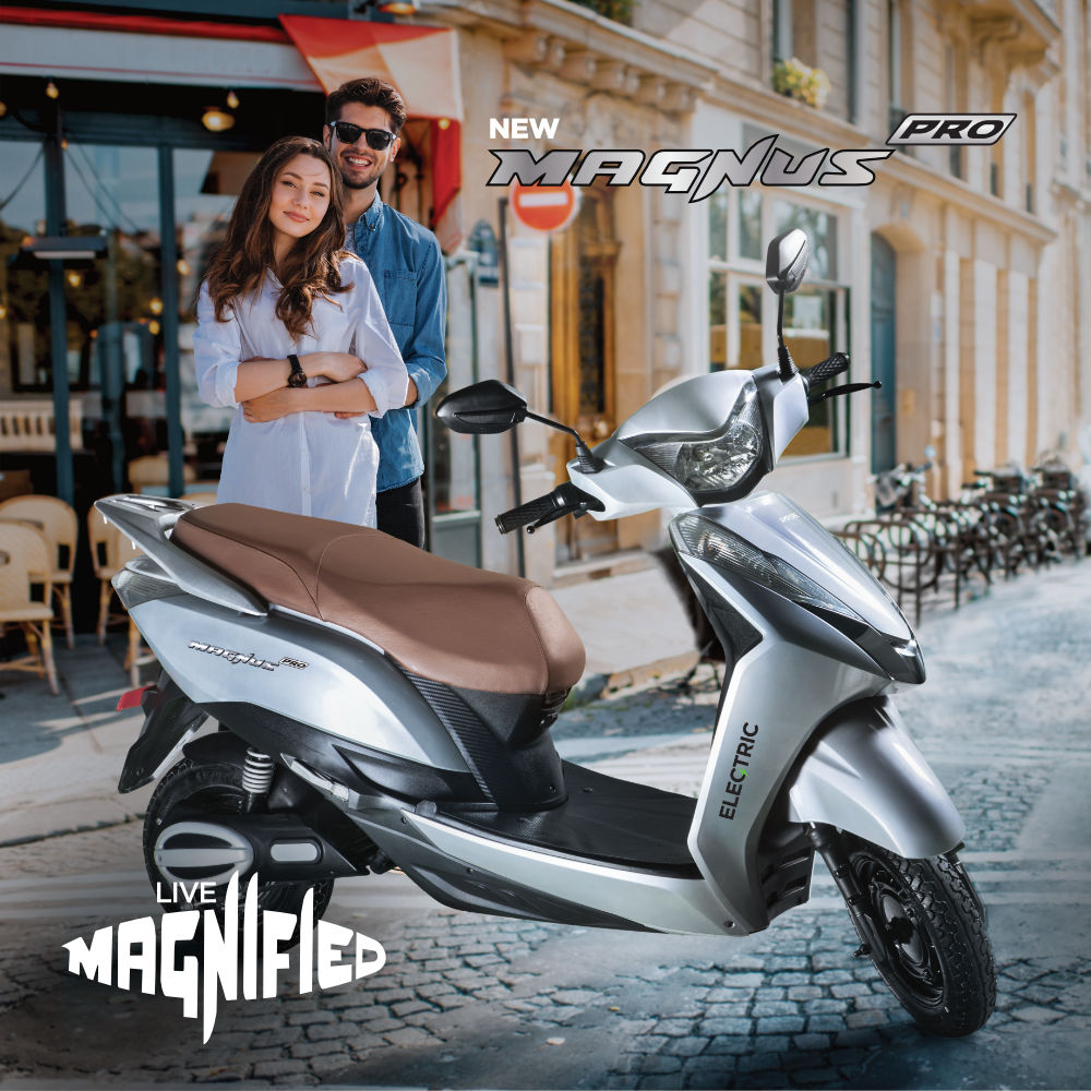 What happens when your need meets speed, nature meets features, science meets magnificence and earnings meet savings – you get the New Magnus Pro. The electric scooter that will redefine the way you rode the conventional scooter. Giving you that extra edge on comfort, performance, convenience, savings, safety and reliability, the New Magnus Pro has been designed to give you that feeling of living life, magnified!